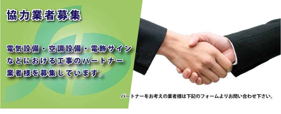 当社では、電気・空調・サイン・建設などの電気設備工事におけるパートナー業者様を募集しています。