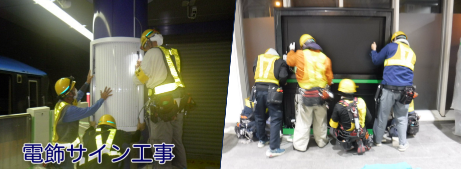 看板サインの工事全般における企画デザインから設計、施工、定期点検、メンテナンスまで、一貫して提供しています。