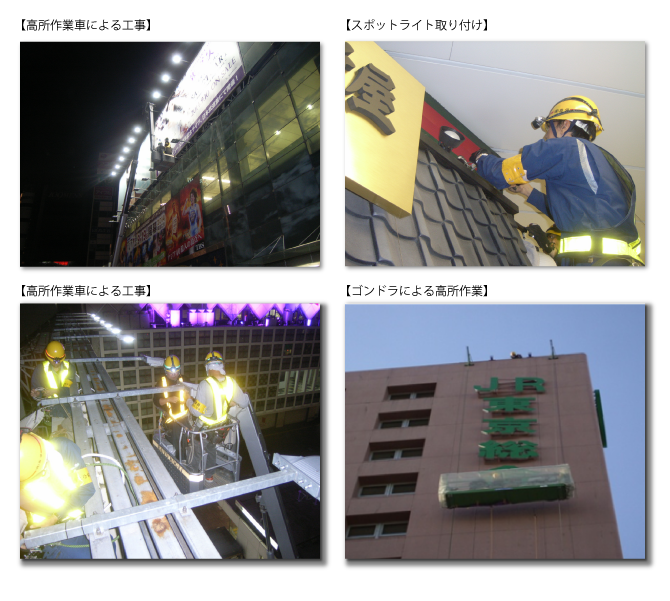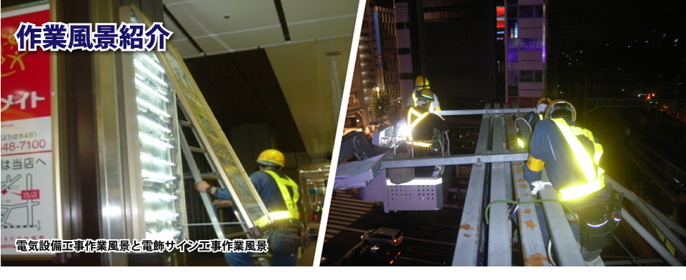 電気設備工事風景と電飾サイン工事風景をご紹介します。